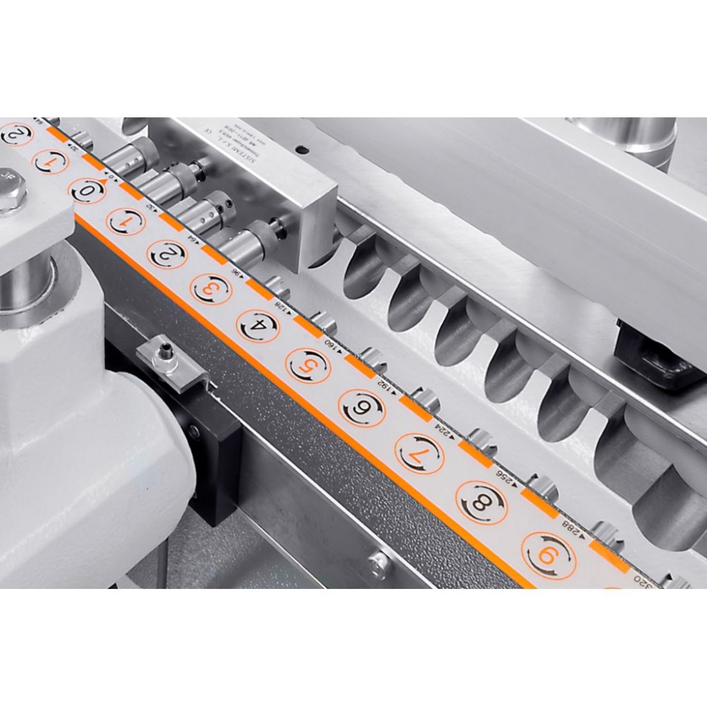 - Поперечне регулювання з цифровим лічильником для налаштування на товщину заготовки при свердлінні в торці або точної відстані від краю заготовки до отвору при свердлінні в пласті