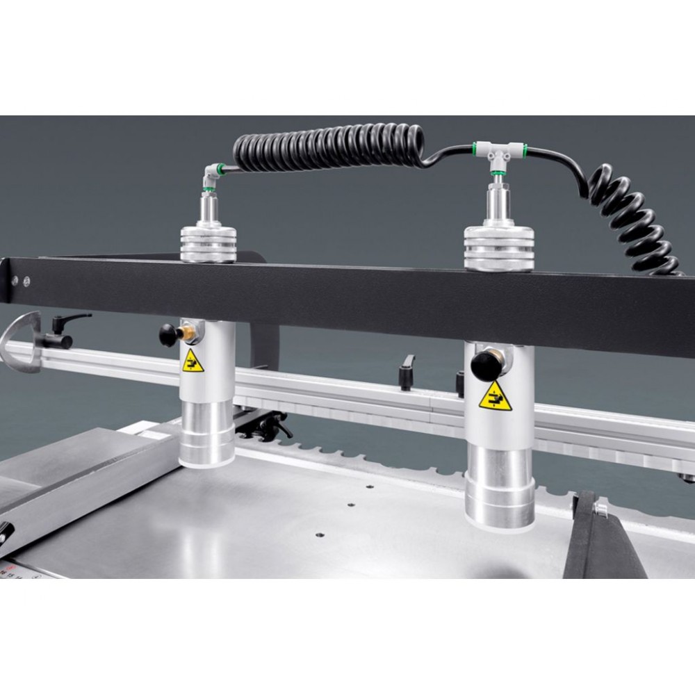 - Позиційна лінійка з упорами та пневматичні затискачі для позиціонування і фіксації деталі