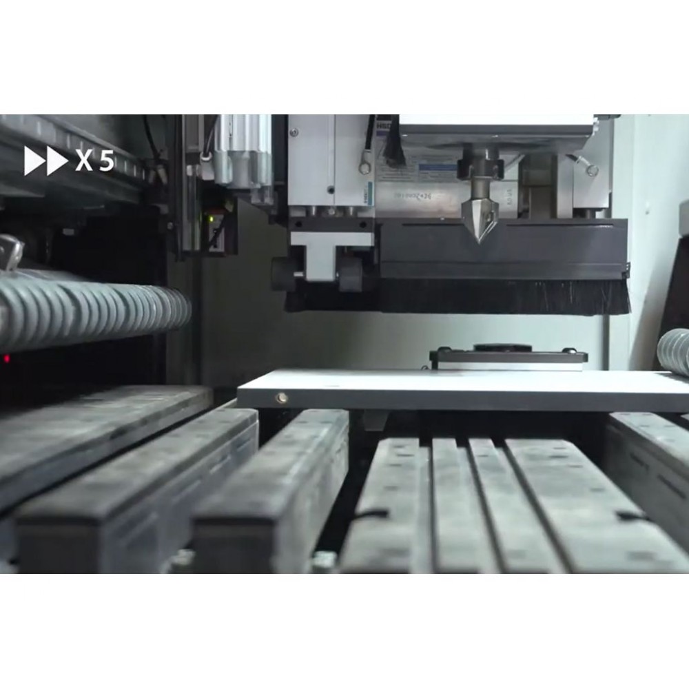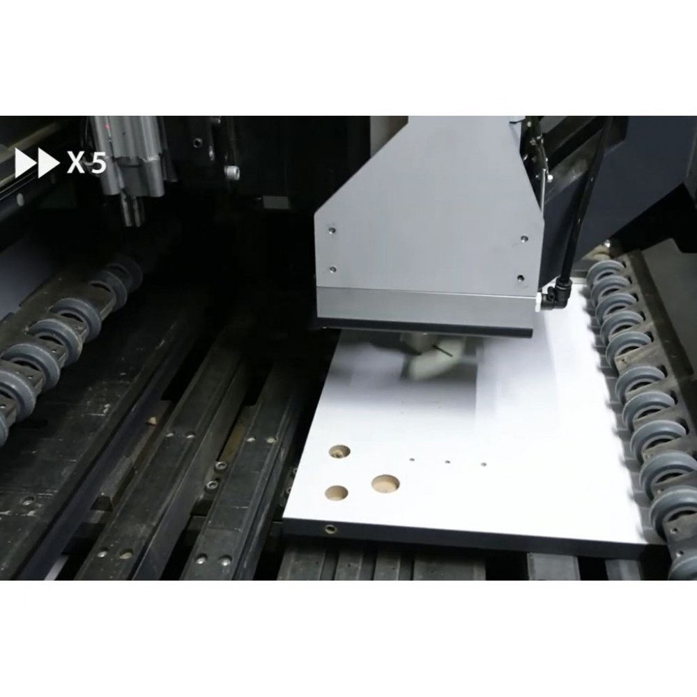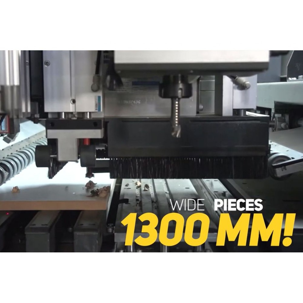 Легко обробляйте різні типи конструкцій завдяки області обробки 1300 мм і функції подачі деталей з обох сторін. Виконайте свердління і фрезерування з 5 сторін деталі.