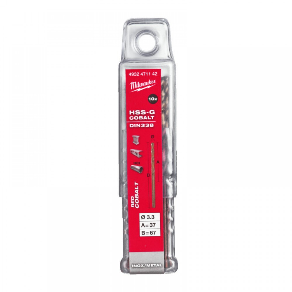 Свердло по металу HSS-Co MILWAUKEE, DIN338, Ø3,3х67х37мм, (10шт)