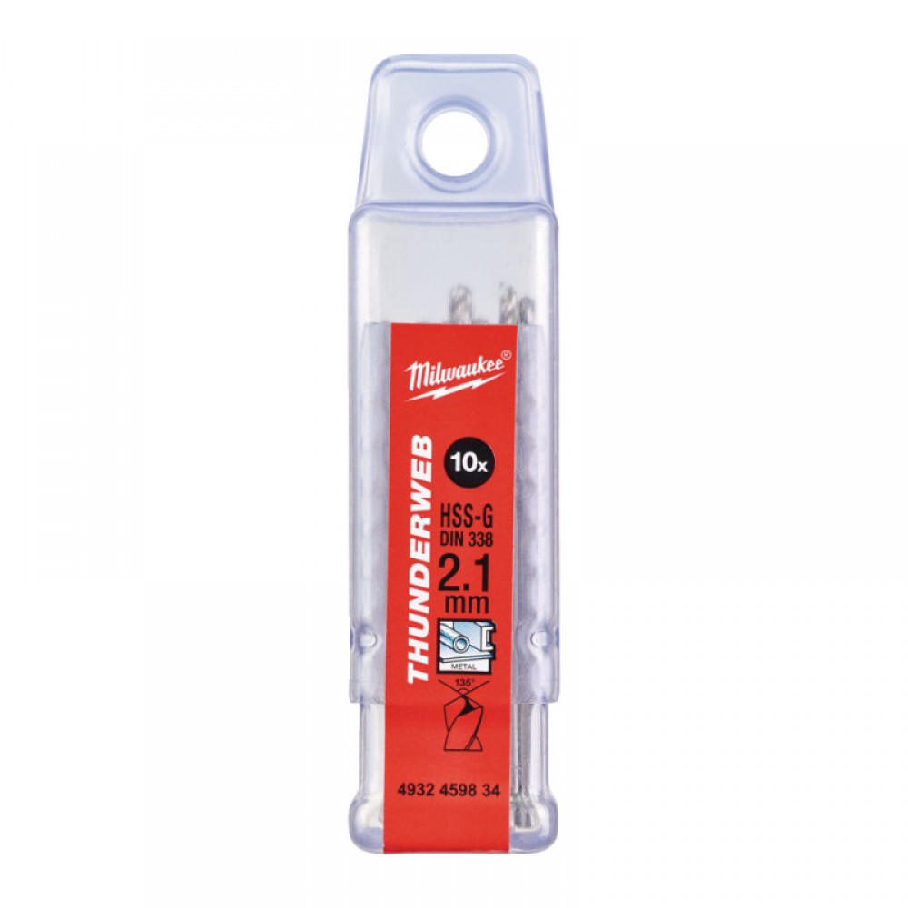 Свердло по металу THUNDERWEB HSS-G MILWAUKEE, DIN338, Ø2,1х49х24мм, (10шт)
