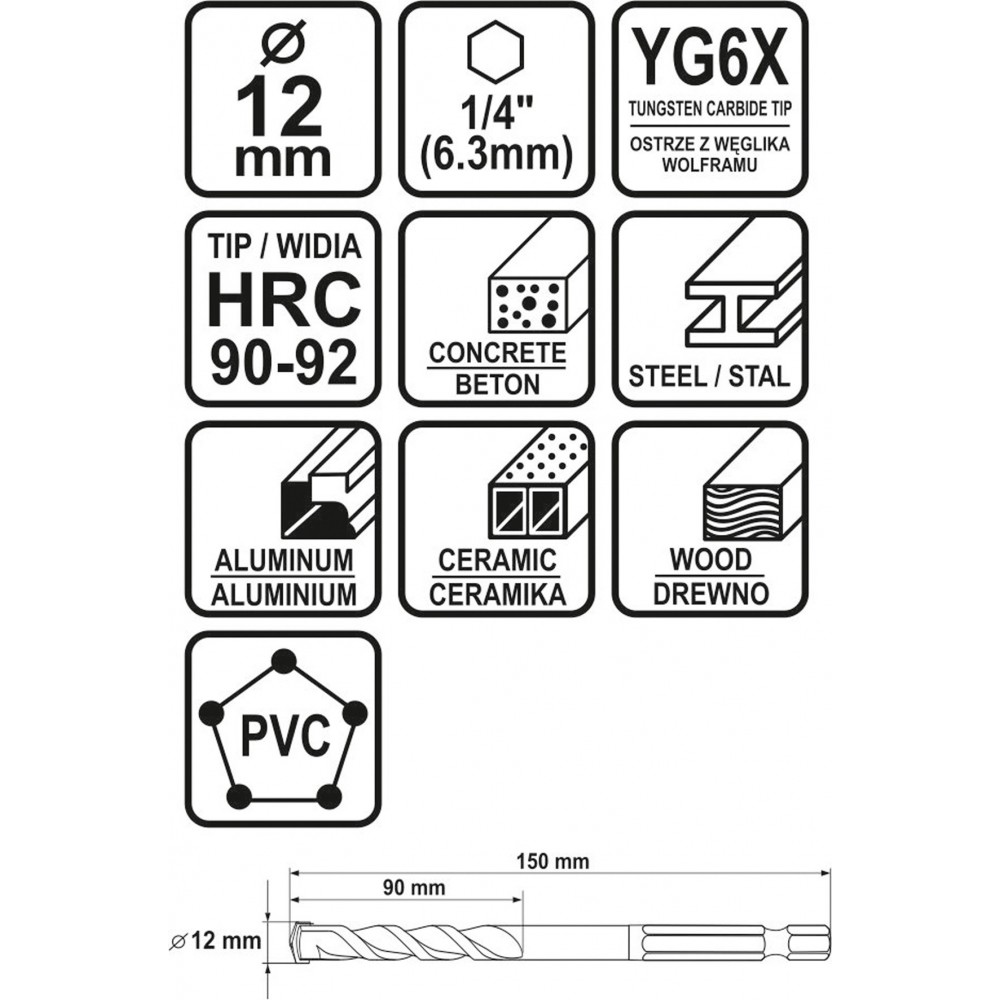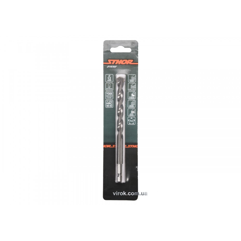 Свердло універсальне STHOR з шестигранним хвостовиком 1/4" 12 х 150/90 мм YG6X