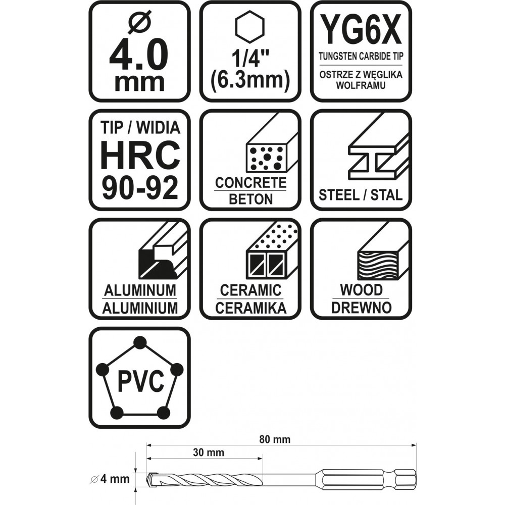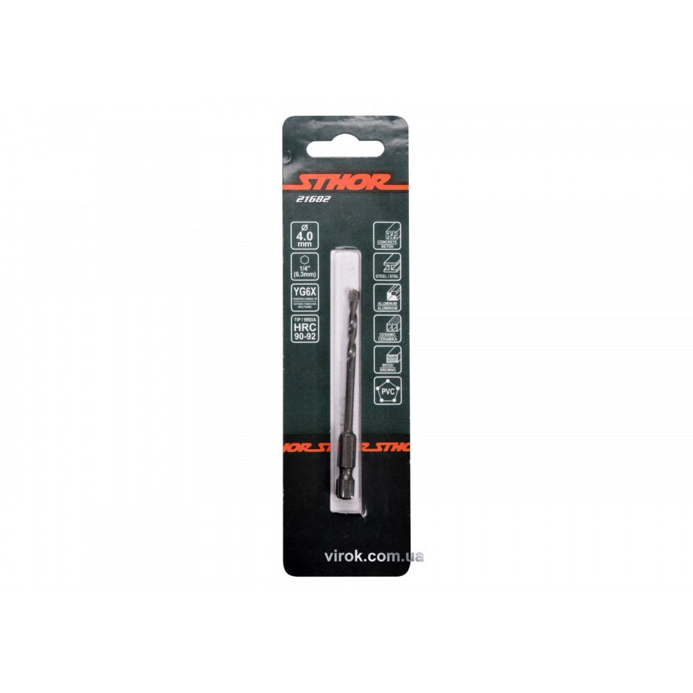 Свердло універсальне STHOR з шестигранним хвостовиком 1/4" 4 х 80/30 мм YG6X