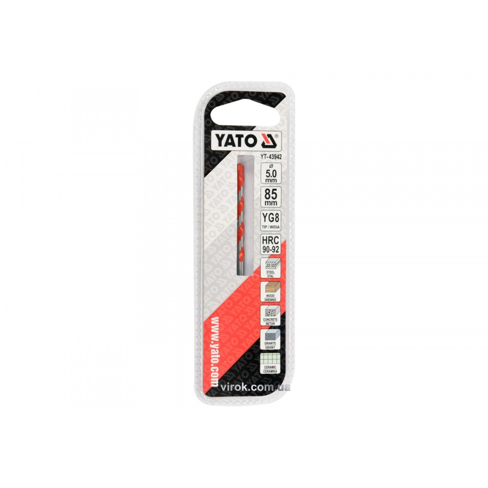 Свердло універсальне YATO YT-43942 призначене для свердління в матеріалах (бетон, кераміка, залізобетон, граніт), а також в дереві та металі.