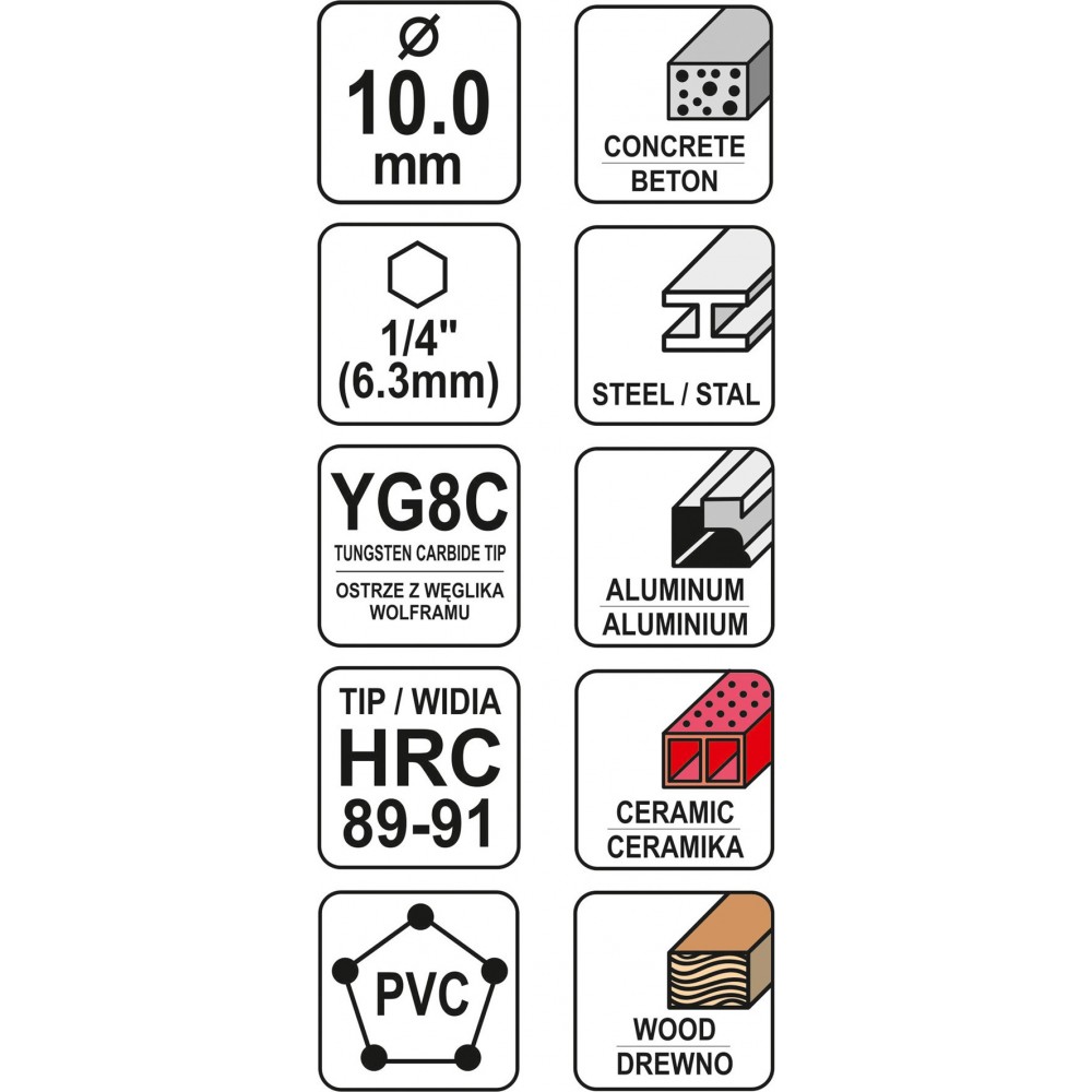 Свердло універсальне YATO YT-44786, яке завдяки спеціальній спіральній конструкції дозволяє свердлити практично всі матеріали – метал, бетон, алюміній, кераміку, дерево та пластик.