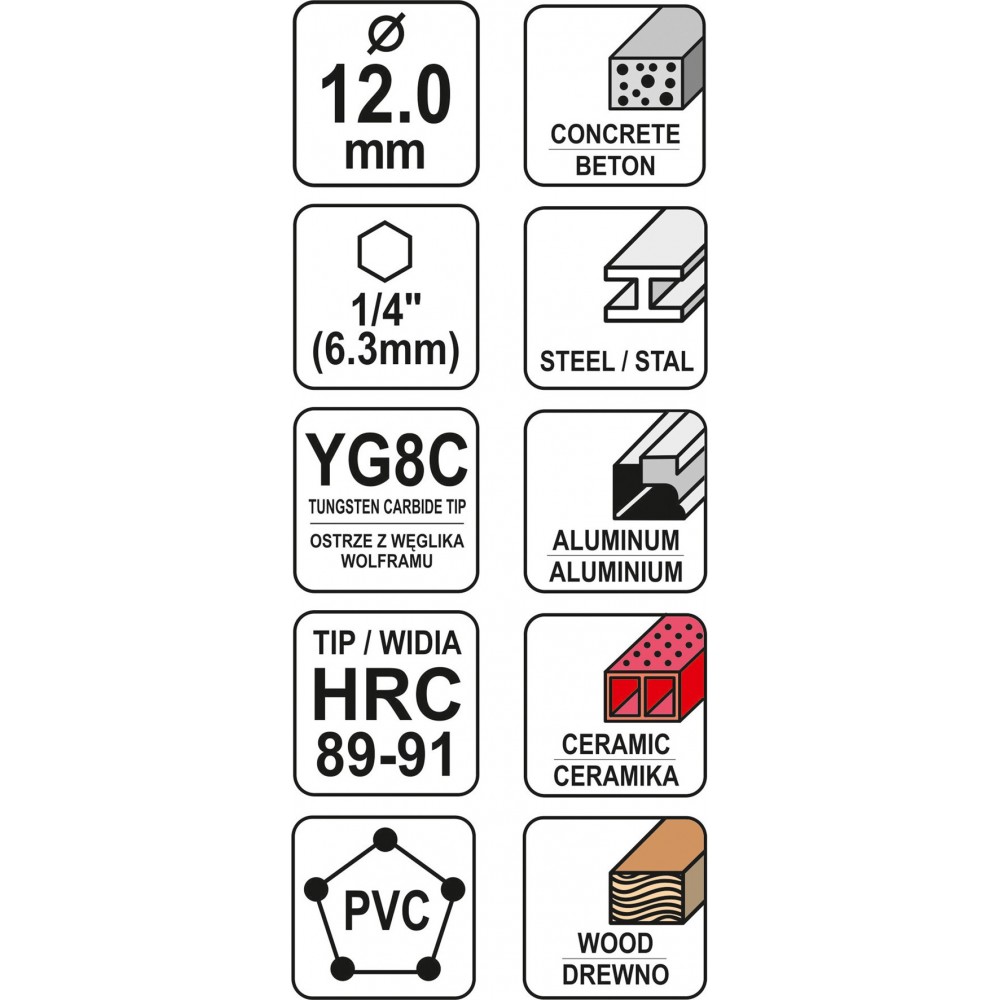 Свердло універсальне YATO YT-44787, яке завдяки спеціальній спіральній конструкції дозволяє свердлити практично всі матеріали – метал, бетон, алюміній, кераміку, дерево та пластик.