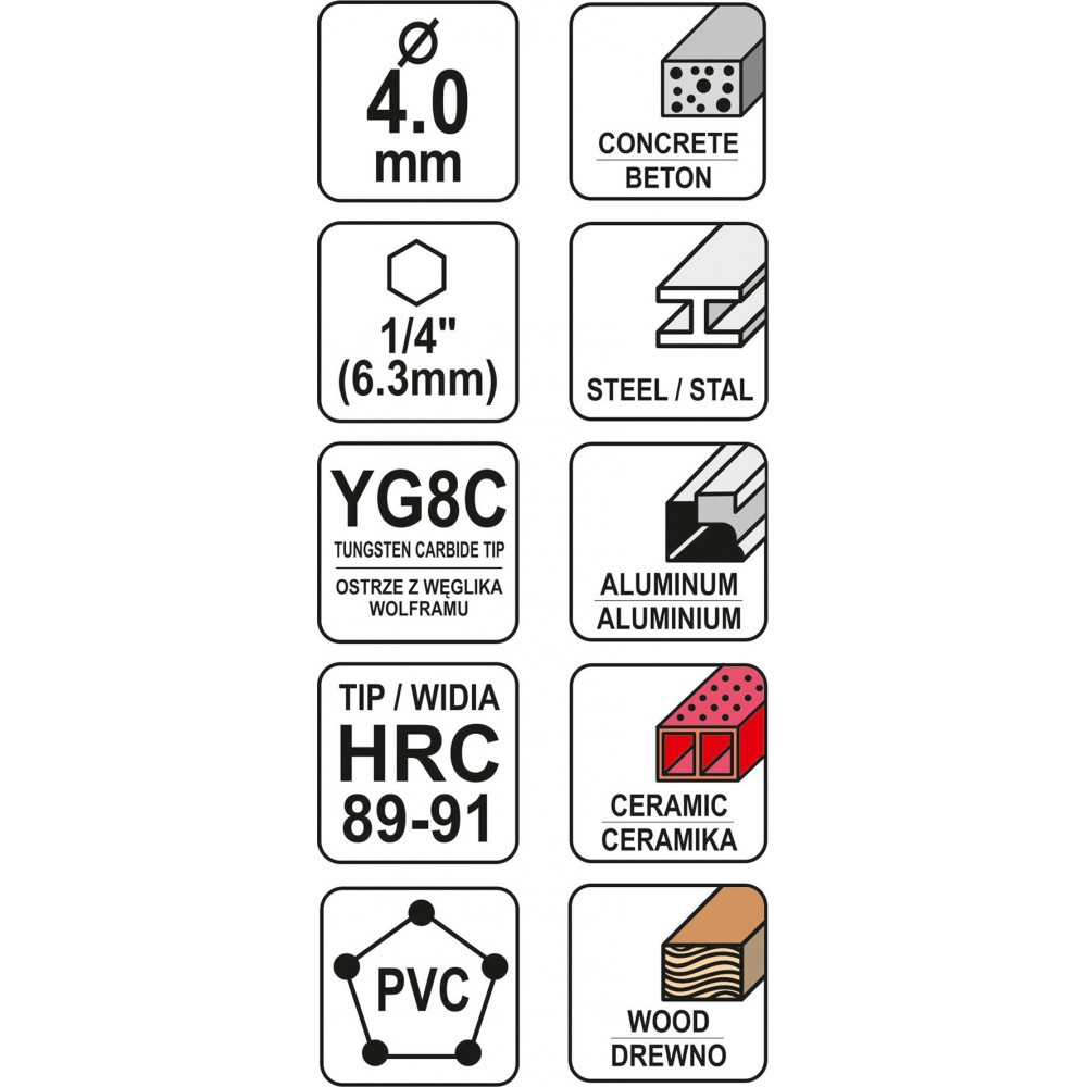 Свердло універсальне YATO YT-44781, яке завдяки спеціальній спіральній конструкції дозволяє свердлити практично всі матеріали – метал, бетон, алюміній, кераміку, дерево та пластик.