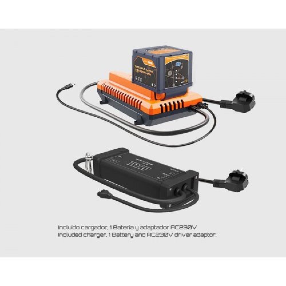 - У комплекті поставляється зарядний пристрій для одночасного заряджання 2 акумуляторів (один акумулятор поставляється в комплекті, ще один можна придбати окремо – для тривалих робіт).