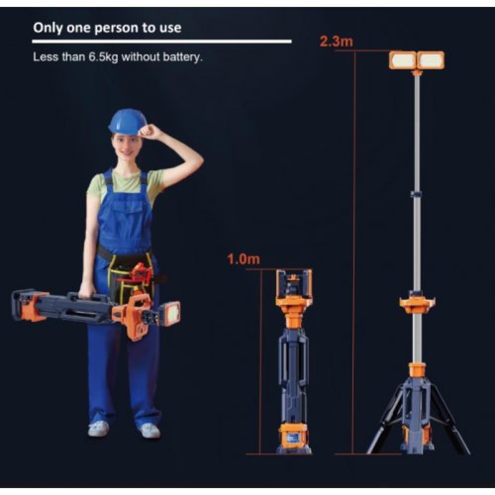 Світлова щогла акумуляторна GENERGY LED TOWER DIRECT 200 12000Лм 2,3 м – це яскравий світлодіодний прожектор з телескопічною ніжкою. Живлення – від акумулятора (входить до комплекту) або від електромережі. За твердженням виробника, є однією з найяскравіших акумуляторних світлових щогл у світі.