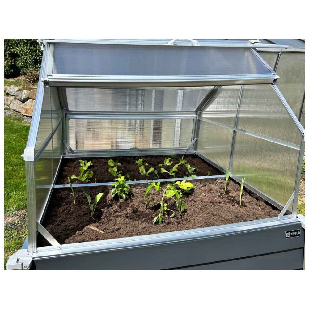 Теплиця Zipper ZI-BGWH169 - це справжня знахідка для вашого господарства, адже вона дуже зручна, якісна та практична. Завдяки компактному розміру не займає багато місця, а 2 посадкові лотки розміром 1160х540 мм і висотою близько 18 см дозволяють вирощувати досить багато рослин. Основа виконана з оцинкованої листової сталі товщиною 0,25 мм, накриття - з двостінного сотового полікарбонату товщиною 4 мм. Верхня частина рами виготовлена з міцного алюмінію.