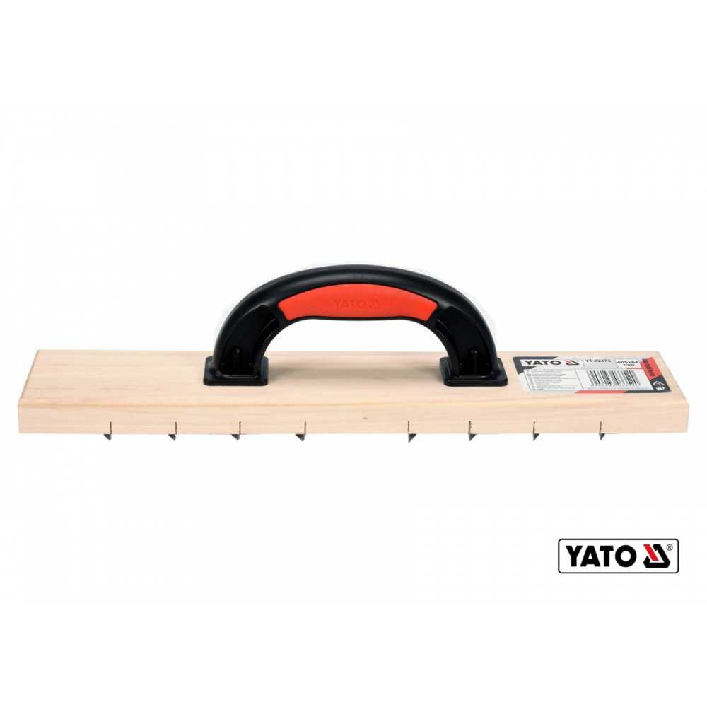 Терка для зняття штукатурки дерев'яна з дрібними зубцями YATO 405 х 84 мм пластикова ручка. Призначена для згладжування незначних нерівностей стін з блоків та видалення старої штукатурки