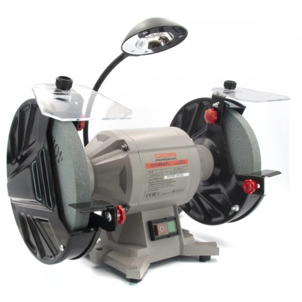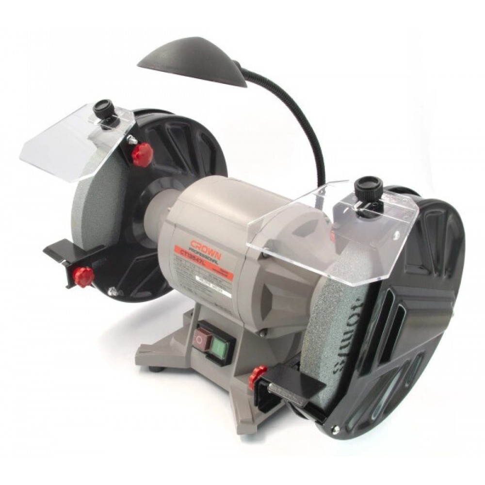 Crown CT13547L - електричний верстат для заточування різальних інструментів та шліфування металевих або дерев'яних заготовок. Конструкція оснащена захисними елементами та пристроями для фіксації матеріалу, що підвищує точність обробки. Модель використовується в домашніх майстернях, невеликих ремонтних зонах та на малих виробничих об'єктах.