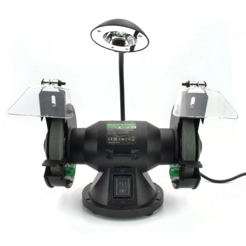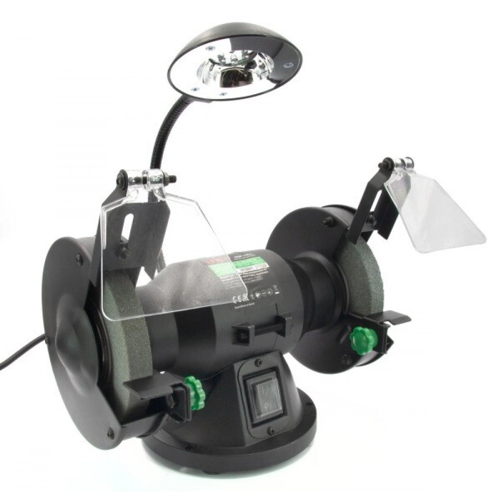 - світлодіодна лампа вбудована в корпус і спрямована на робочу зону, покращуючи видимість при заточуванні та шліфуванні в умовах недостатнього освітлення;