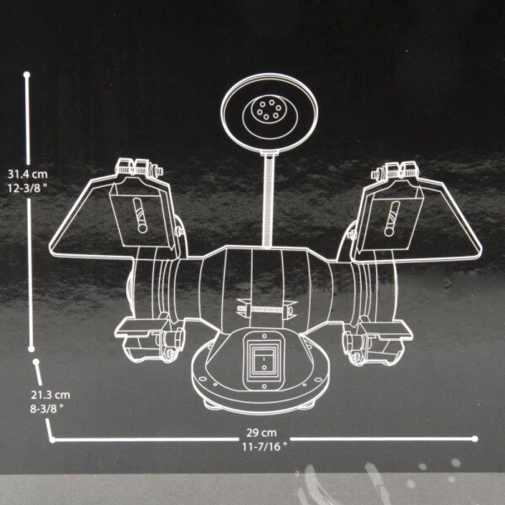- Верстат; - шліфувальний диск (2 шт.); - захисний екран (2 шт.); - монтажний гвинт з гайкою (4 шт.); - опорна пластина (2 шт.); - ліхтар; - картонна коробка; - інструкція з експлуатації; - гарантійний талон