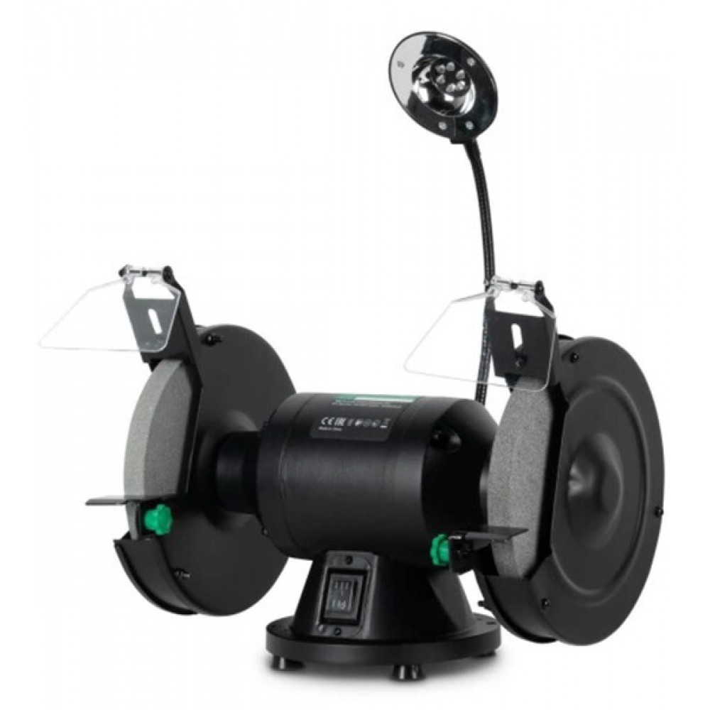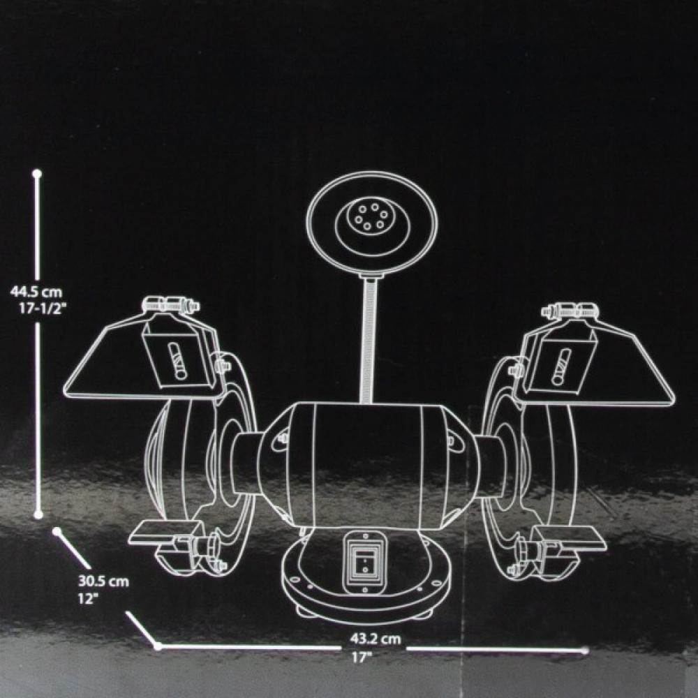 - Верстат; - шліфувальний диск (2 шт.); - захисний екран (2 шт.); - монтажний гвинт з гайкою (4 шт.); - опорна пластина (2 шт.); - ліхтар; - картонна коробка; - інструкція з експлуатації; - гарантійний талон