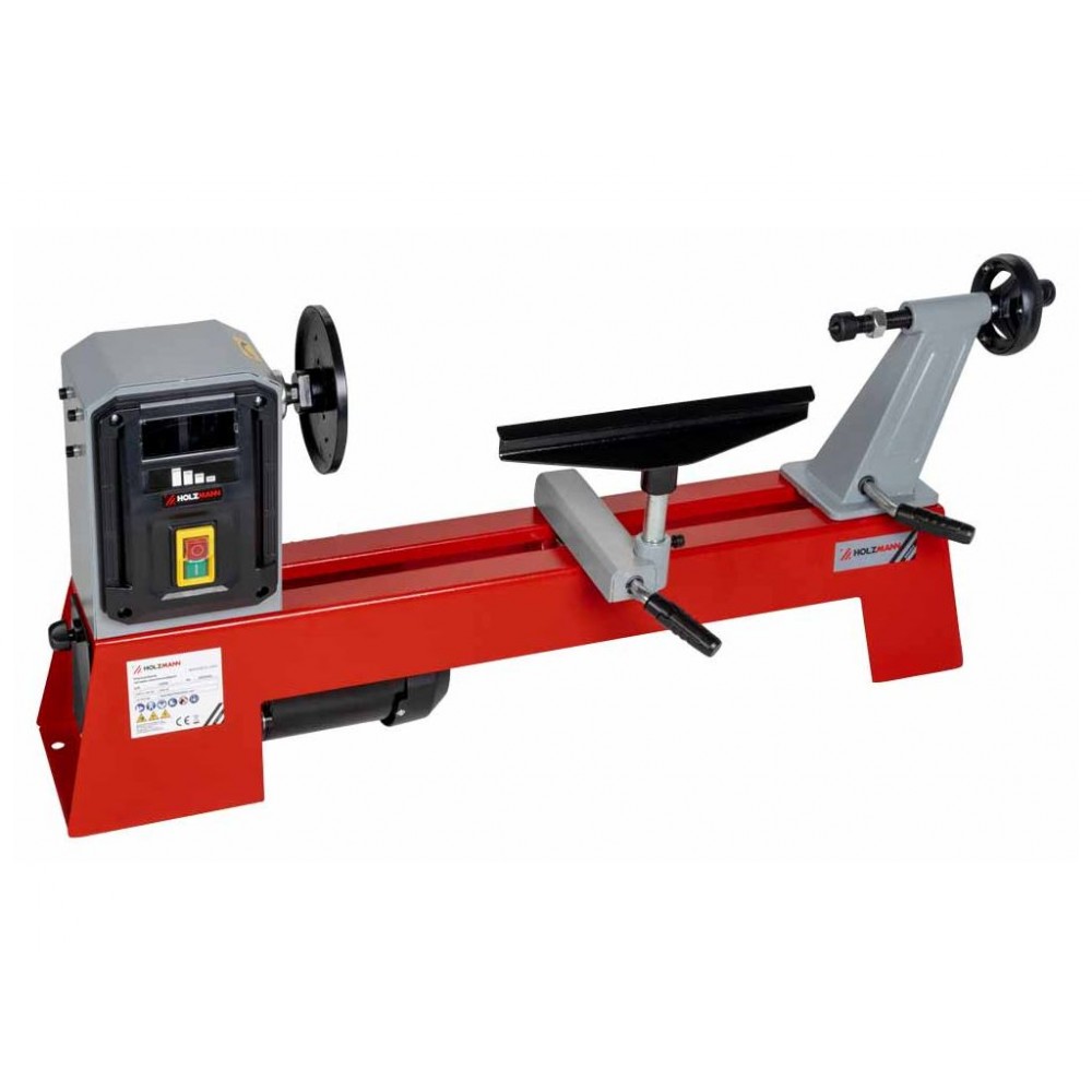 Двигун потужністю 300 Вт (230 В) забезпечує 4 швидкості обертання шпинделя - 890, 1260, 1760, 2600 об/хв, що дає змогу якісно обробляти матеріали різної щільності. Швидкість встановлюється шляхом перекидання ременя. Різьба шпинделя M18x2,5 мм і адаптер M33x3,5 мм дозволяють використовувати різних інструмент для широкого спектру операцій. Задня бабка виконана з чавуну і обладнана швидким затиском. Завдяки міцній, компактній конструкції верстат має високу надійність і тривалий термін служби та може ефективно використовуватися в умовах обмеженого простору. Цей токарний верстат по дереву буде корисним для виготовлення меблів, декоративних конструкцій й інших виробів з деревини.