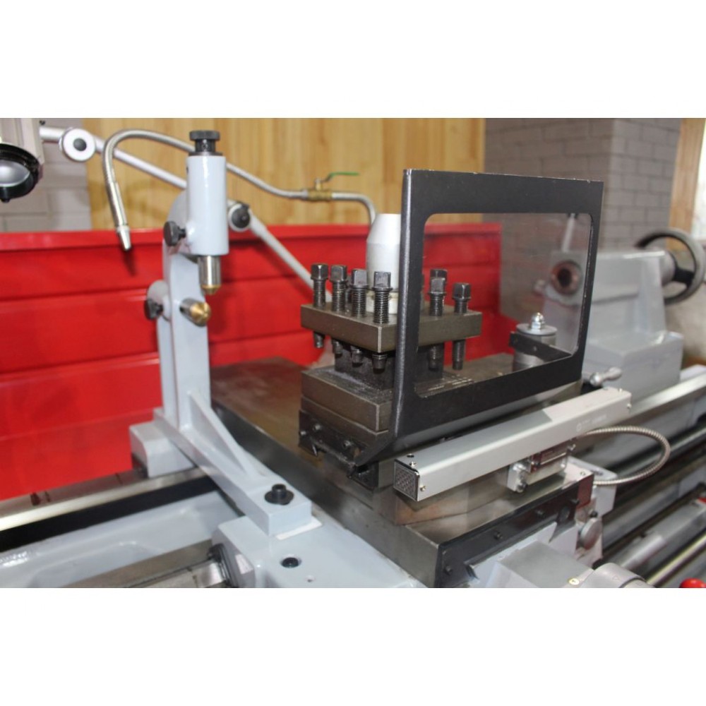Для максимального контролю і точності обробки верстат оснащений цифровою індикацією по 3 осях. Автоматичні поперечна і поздовжня подачі збільшують швидкість і продуктивність роботи. Загартованні шестерні коробки подач, редуктор у масляній ванні, професійний шпиндель з кріпленням Camlock D8 та жорстка, лита станина гарантують, що цей токарний верстат металообробний буде надійним і безвідмовним у роботі.
