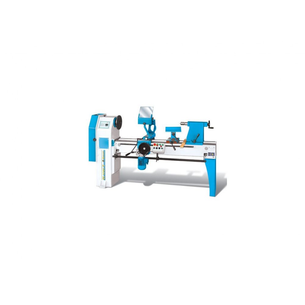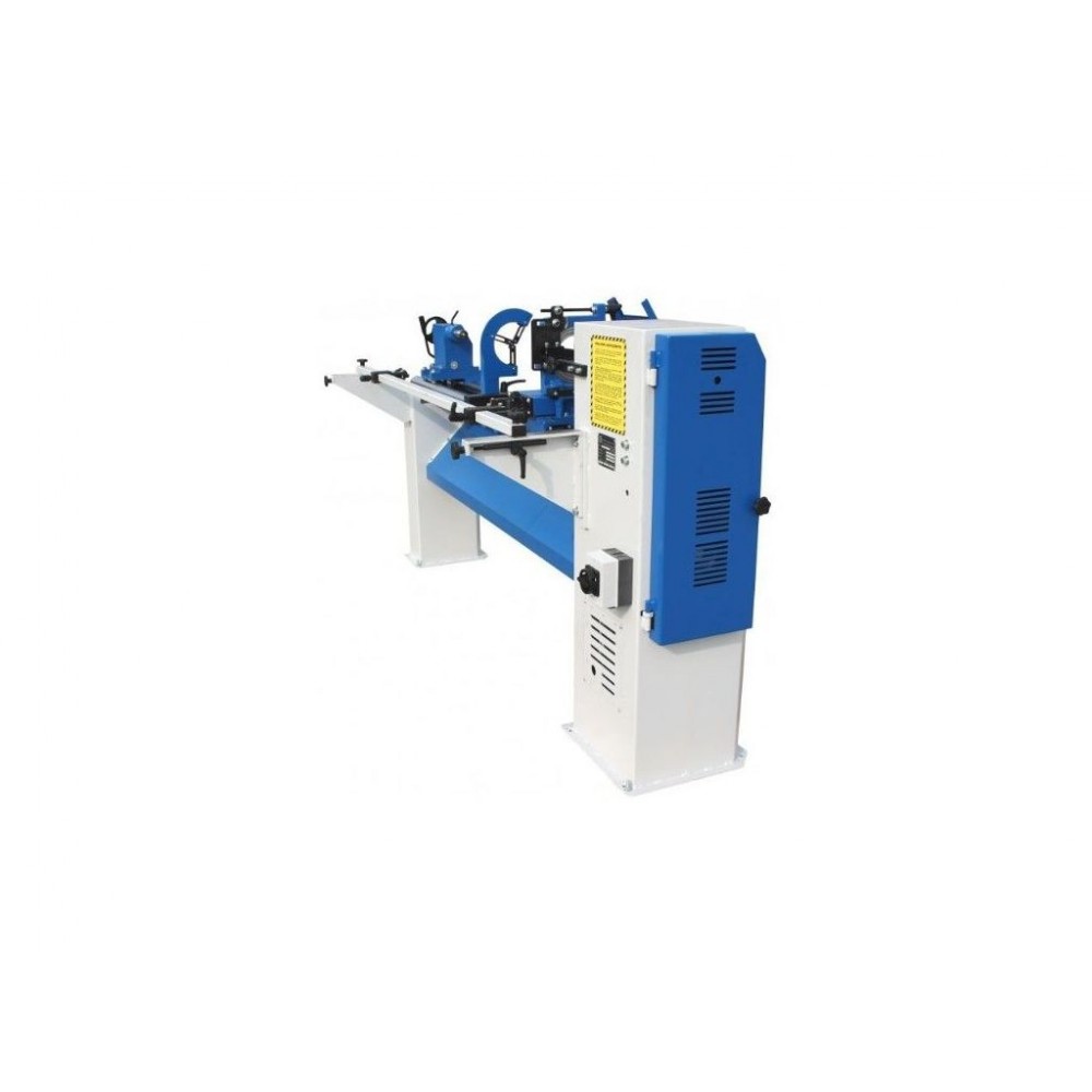 Токарно-копіювальний деревообробний верстат з можливістю виготовлення спіралей. Корпус з сірого чавуну і зварні напрямні. Задня бабка з провідним центром. Поздовжній і поперечний супорт. Пристосування для копіювання за шаблоном. Верстат оснащений наступні приналежностями: ножова опора 10" (254 мм), центр обертається для заднього сідла, центр ведучий для переднього сідла, Планшайба Ø 10" (Ø 254 мм), прут для вибивання, стійка з роз`ємами для 4 різців, інструменти для обслуговування.