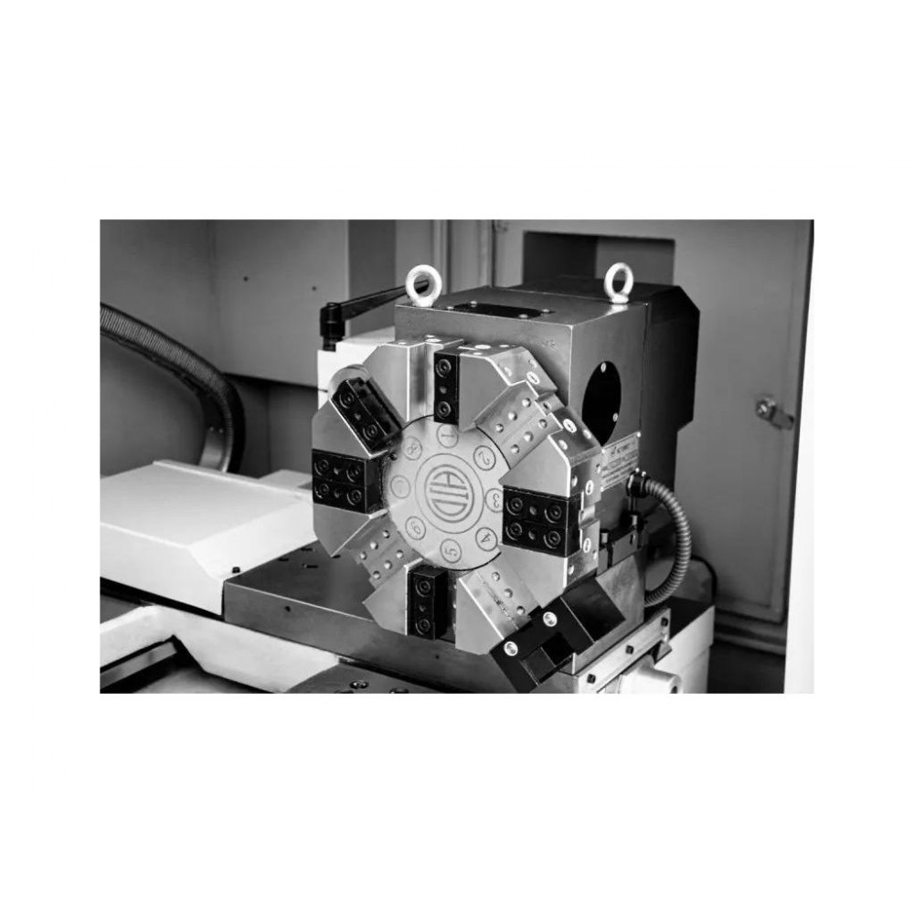Верстат має жорстку та масивну конструкцію зі сталевим плоским ложем шириною 430 мм, що гарантує високу стійкість і мінімізацію вібрацій при обробці великих заготовок. Оснащений прецизійним шпинделем із отвором 75 мм (опція 90 мм), восьмипозиційною револьверною головкою та піноль з конусом MT5 для точноїта жорсткої фіксації довгих деталей. Автоматична система змащення, система охолодження та ергономічне робоче освітлення забезпечують надійність та довговічність експлуатації.
