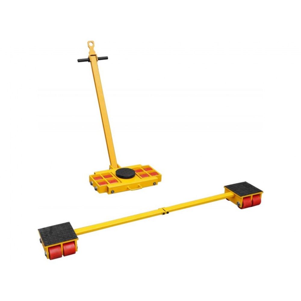 Поліуретанові протекторні ролики діаметром 85 мм легко проїжджають по нерівних поверхнях і не пошкоджують підлогу. Важіль довжиною 1080 мм дозволяє зручно управляти рухом, а поворот на 90° - легко маневрувати в обмеженому просторі. Коли немає потреби у використанні, набір можна компактно скласти для зручного зберігання та перевозити у багажнику автомобіля. Конструкція виготовлена з високоякісних матеріалів, що робить цей набір для переміщення вантажів надзвичайно міцним і довговічним.