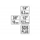 Набір тримачів-адаптерів торцевих головок SDS-Plus YATO YT-04686 з квадратами 1/4", 3/8" і 1/2" призначений для використання з ручним і електричним інструментом. Виготовлений зі сталі Cr40. Відмінно підійде для роботи у важкодоступних місцях і поглибленнях.