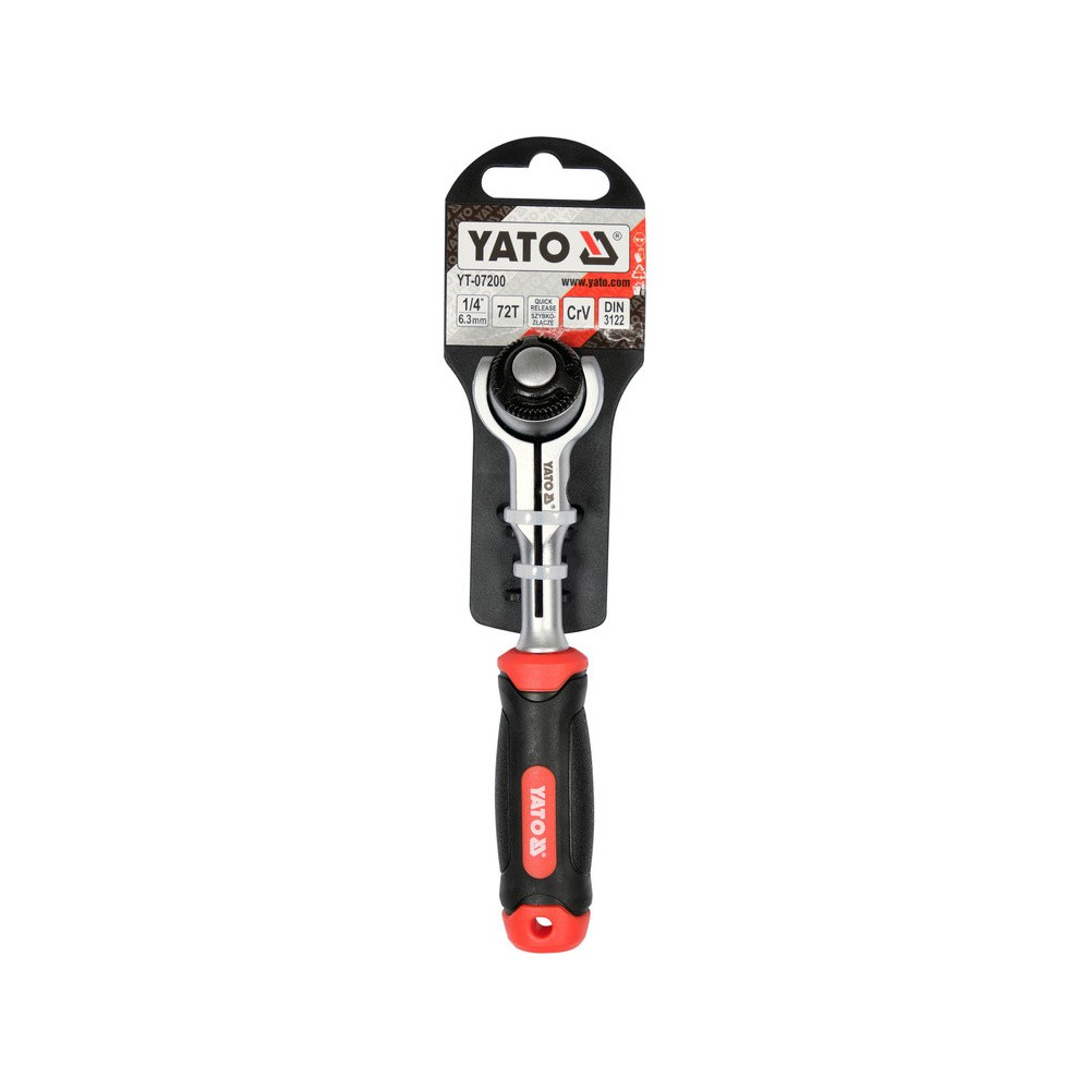 розмір ручки: 1/4" (6,3 мм) поворотна головка кількість зубів: 72; Довжина: 145 мм матеріал: 40CrV DIN: 3122; поверхня: сатин матеріал ручки: PP, TPR