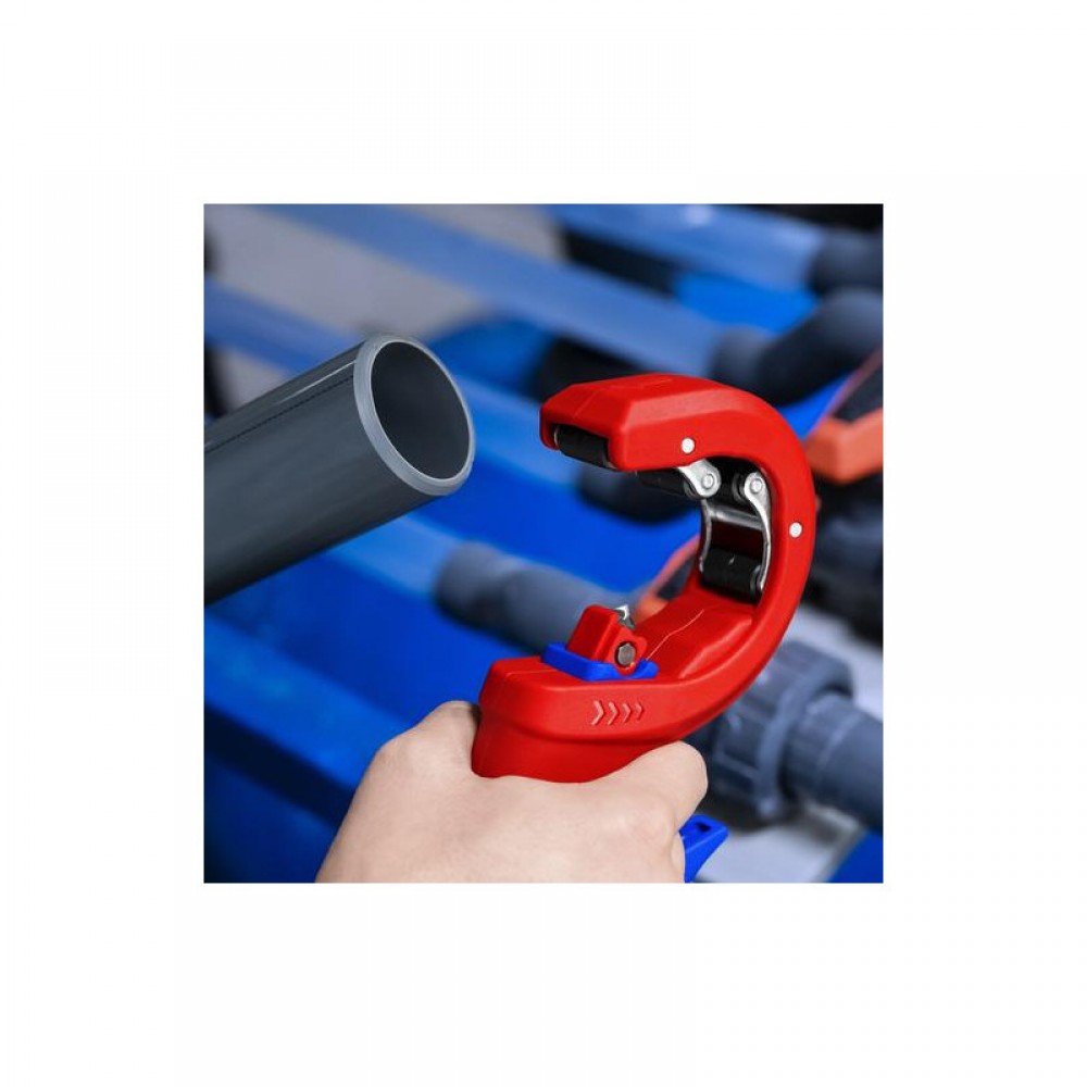 Труборіз Knipex DPT50 для товстостінних пластикових труб, включаючи пінопласт. Різання та зняття фаски за один крок. Покритий пластиком. 202 мм