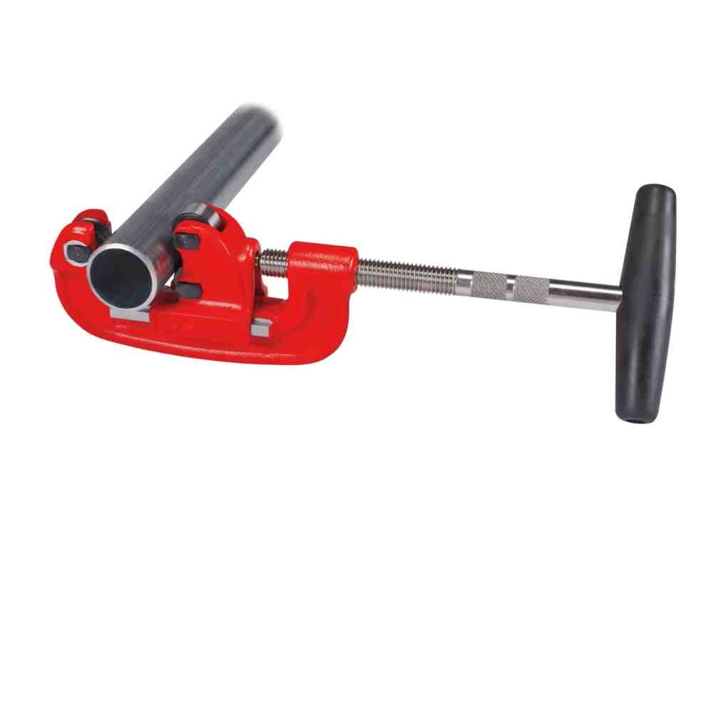 ✔ Труборіз характеризується широкими роликами для надійного ходу різального колеса по трубі, хромованим гвинтом подачі, простим регулюванням зусилля для запобігання утворенню підвищеного тиску на зварних або овальних трубах.