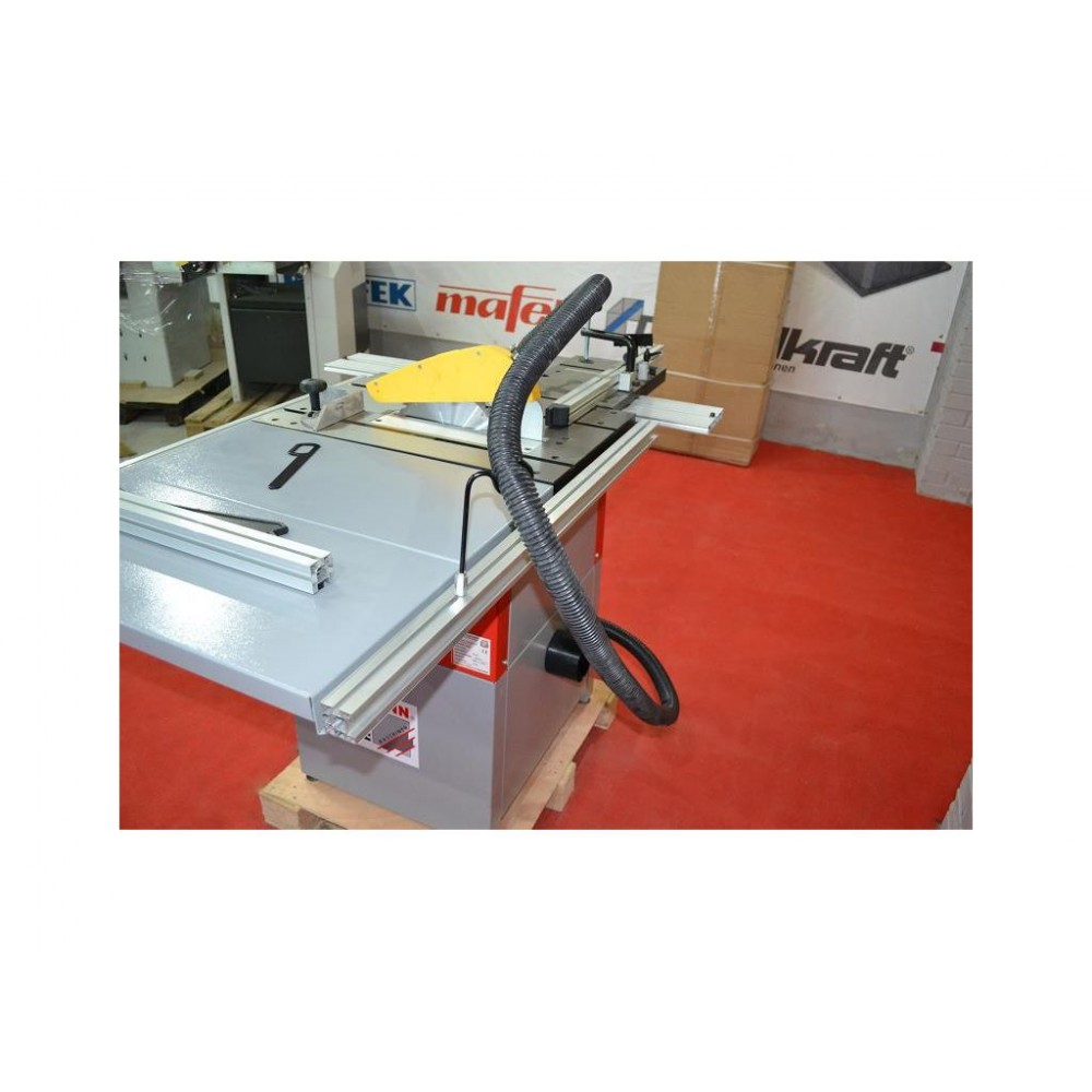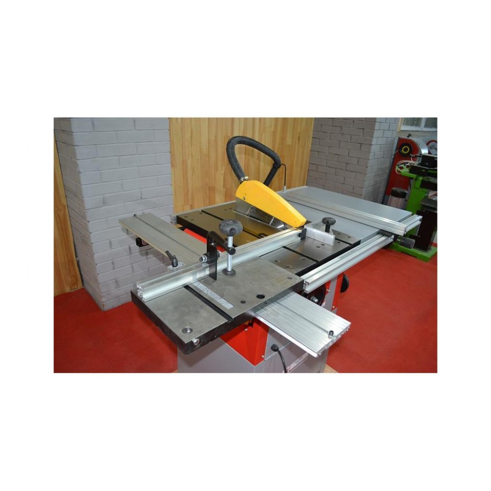 Захисний кожух пильного диска має патрубок для видалення стружки, який підключається до основного патрубку зовнішньої аспіраційної системи.