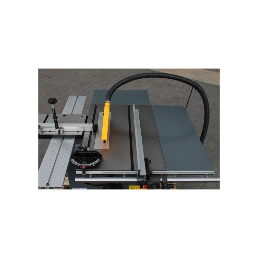 Основний робочий стіл циркулярної пилки по дереву TS 250 виготовлений з чавуну, а подовження столу з оцинкованої сталі надійно захищений від корозії і має паралельний і кутовий упор.