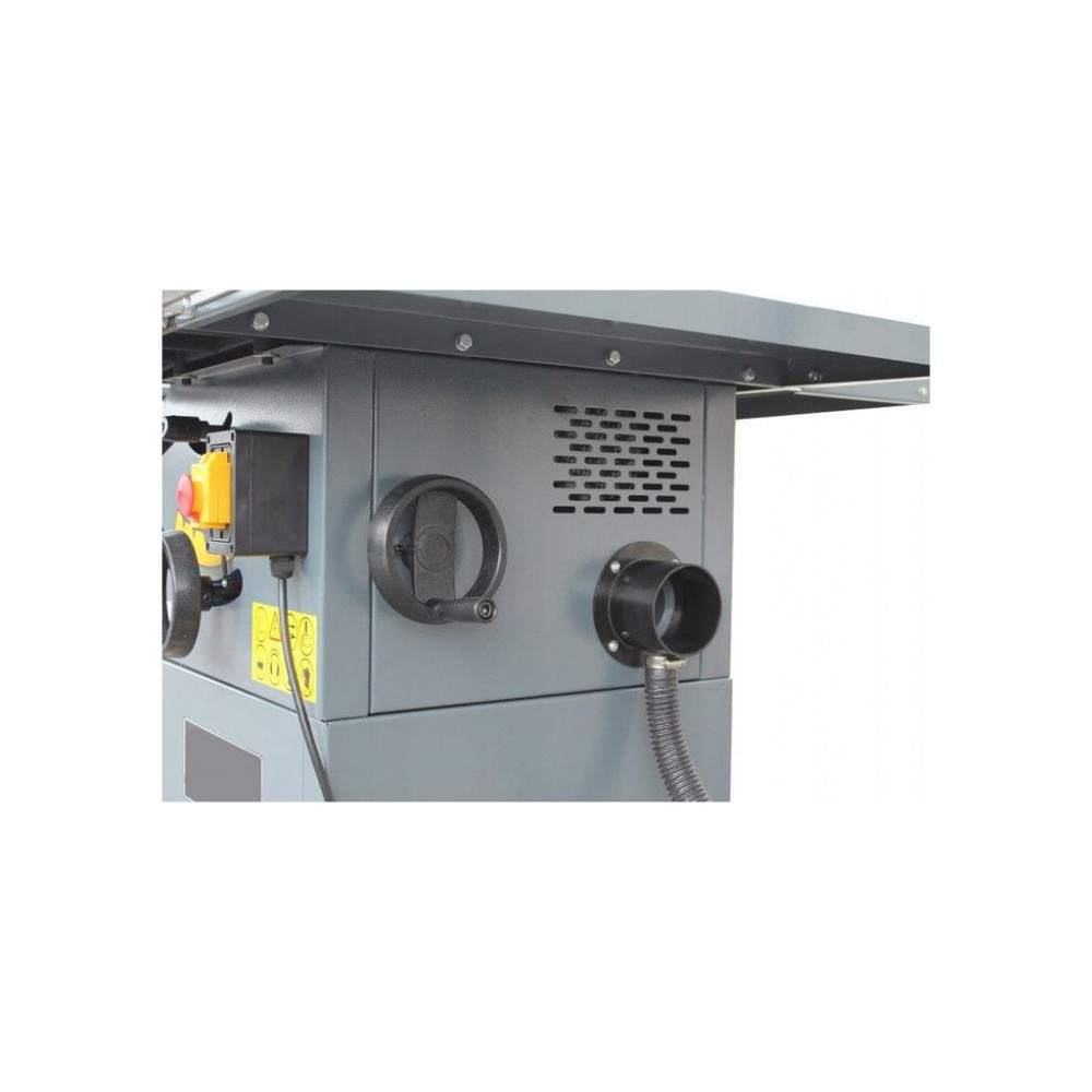 За допомогою ручного маховика за шкалою можна відрегулювати висоту пильного диска над робочим столом і таким чином контролювати глибину пропилу. Крім того, є можливість змінювати нахил пильного диска від 90° до 45°.