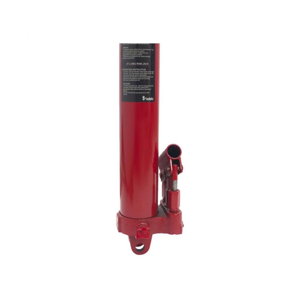 Універсальний гідроциліндр з двоступінчастим насосом REDATS 8Т має надзвичайно широкий спектр застосування, адже може використовуватися як у складі гідравлічних пресів, домкратів та підйомників, так і незалежно для підйому авто, монтажних і демонтажних робіт тощо. Вантажопідйомність 8 тонн і хід поршня 475 мм дозволяють використовувати його для завдань різної складності. У пристрої використовується привід односторонньої дії, який не має запобіжних фіксаторів для утримання вантажу, тому піднятий вантаж необхідно якомога швидше поставити на додаткові опори.