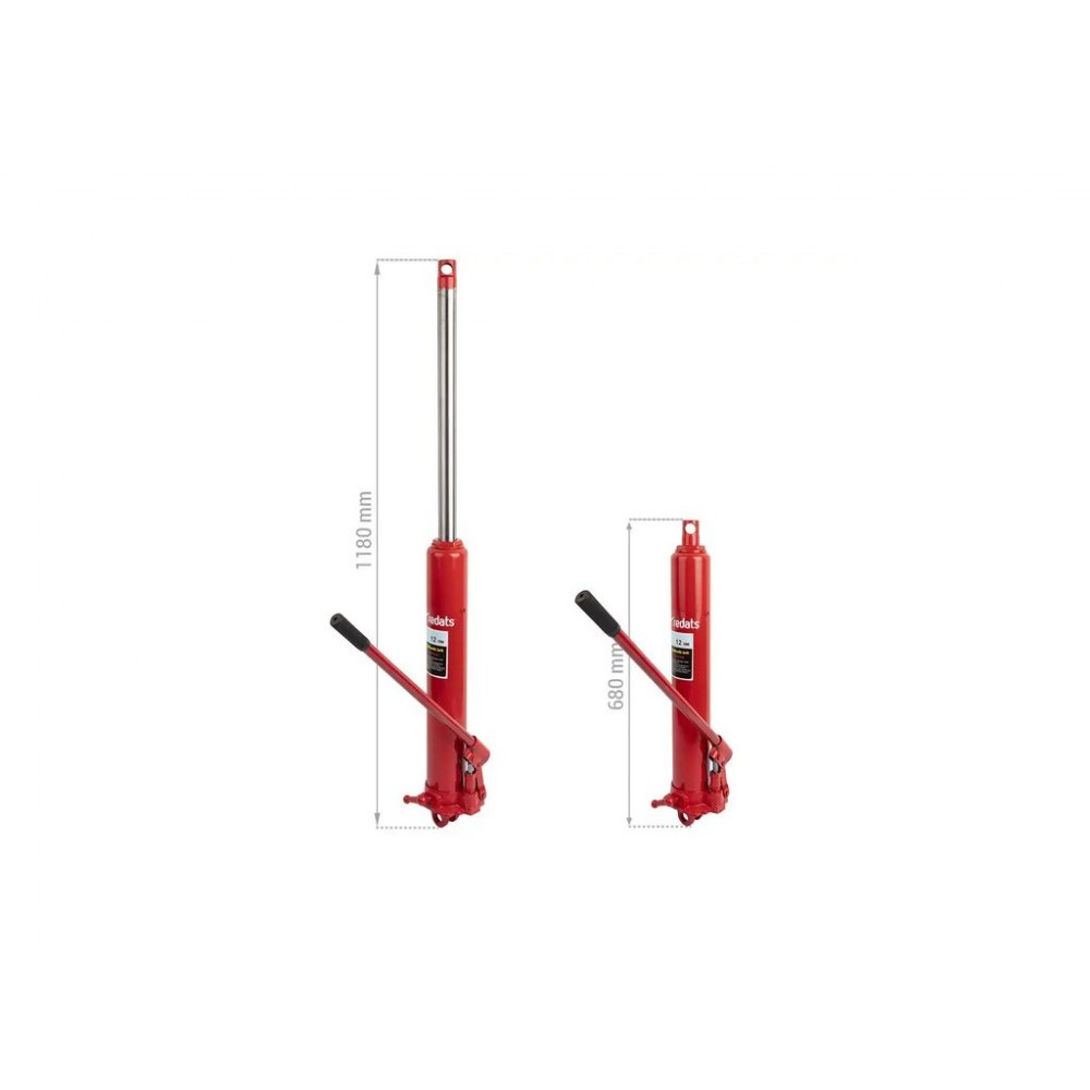 Універсальний гідроциліндр з насосом REDATS 12Т поєднує вантажопідйомність 12 тонн і хід поршня 500 мм, що дозволяє використовувати його для широкого спектра завдань: у складі гідравлічних пресів, домкратів та підйомників, для підйому частин автомобіля та важких конструкцій у будівництві, демонтажних робіт тощо. Оснащений двоступеневим ручним насосом, який забезпечує високу точність, плавність і контрольованість підйому. В гідроциліндрі використовується привід односторонньої дії, не призначений для утримання вантажу, тому піднятий вантаж необхідно якомога швидше встановити на додаткові опори.