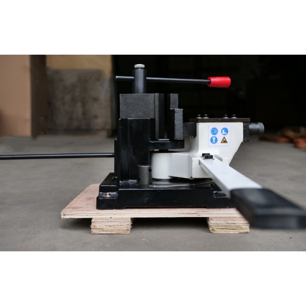 Швидкозатискний ексцентриковий механізм забезпечує надійну фіксацію заготовки, а регульований упор забезпечує високу точність для згинання однакових деталей. Литий металевий корпус з антикорозійним покриттям стійкий до навантажень і вібрацій, забезпечуючи стабільність процесу обробки. Проста в налаштуванні і обслуговуванні конструкція, невеликий розмір і вага дозволяють легко транспортувати цей настільний згинальний верстат, швидко підготувати його до роботи і компактно зберігати.