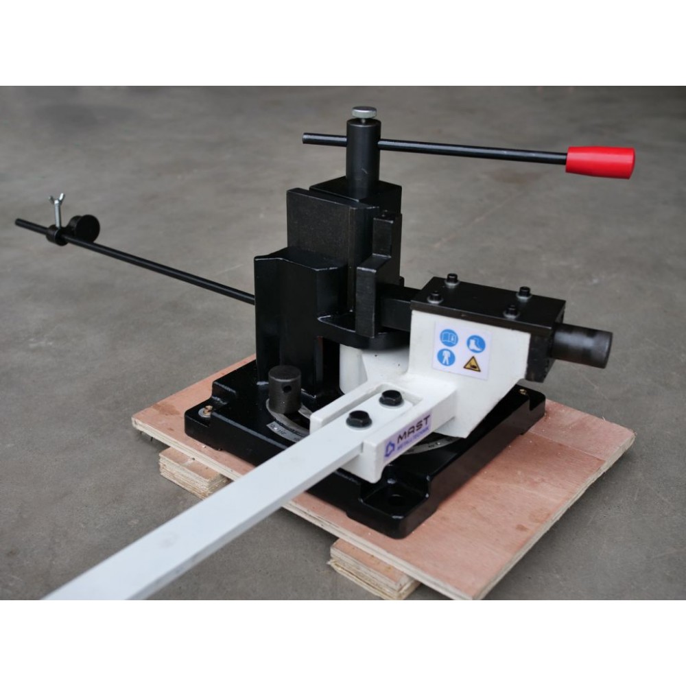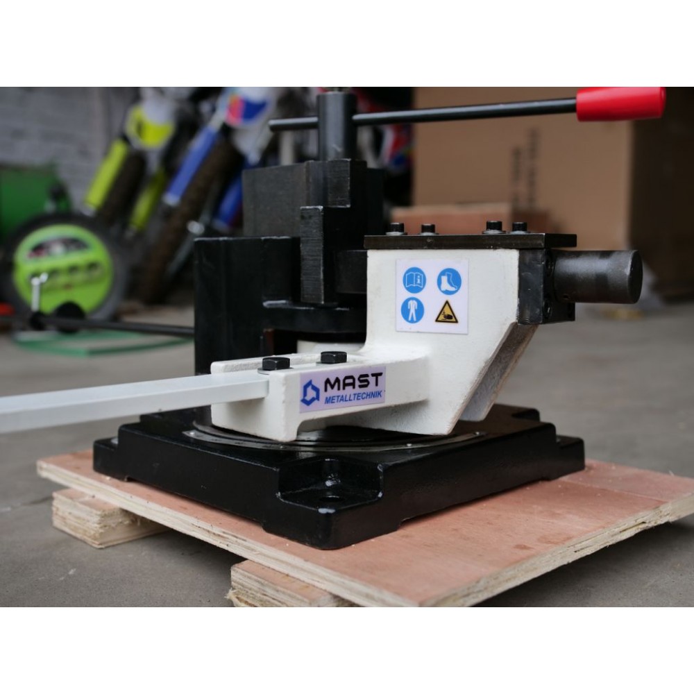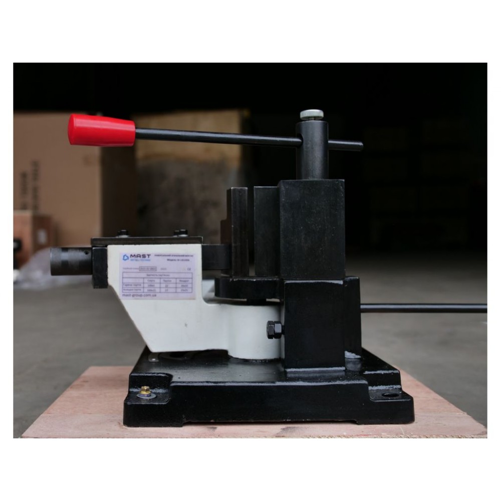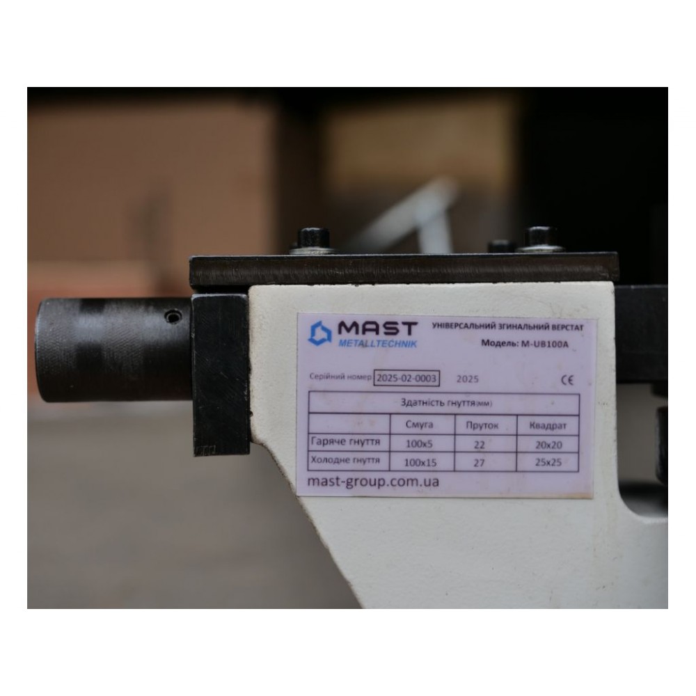 Універсальний листозгинальний верстат MAST Metalltechnik M-UB100A — це компактний ручний пристрій для холодного і гарячого згинання листового металу та профілю круглого і квадратного перетину. Монтажні отвори в станині дозволяють надійно закріпити верстат на верстаку чи іншій робочій поверхні, а довгий важіль з прогумованим хватом створює зусилля згинання без великого фізичного навантаження на оператора. Максимальний кут згину становить 120°.