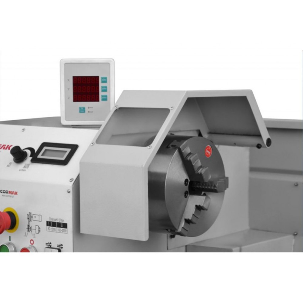 Особливостями моделі є цифрова індикація по 2 осях, прецизійний шпиндель на регульованих шарикопідшипниках зі швидкістю обертання у діапазоні 80-2000 об/хв, автоматичні поздовжня і поперечна подачі та цифровий індикатор швидкості. Призматична ребриста станина з сірого чавуну та індукційно загартовані і точно відшліфовані напрямні станини забезпечують стабільність і високу якість обробки. За рахунок обертання шпинделя вліво і вправо та набору змінних шестерень можна нарізати широкий діапазон метричної і дюймової різьб. Цей верстат токарний універсальний купити за вигідною ціною можна на сайті KMA.UA.