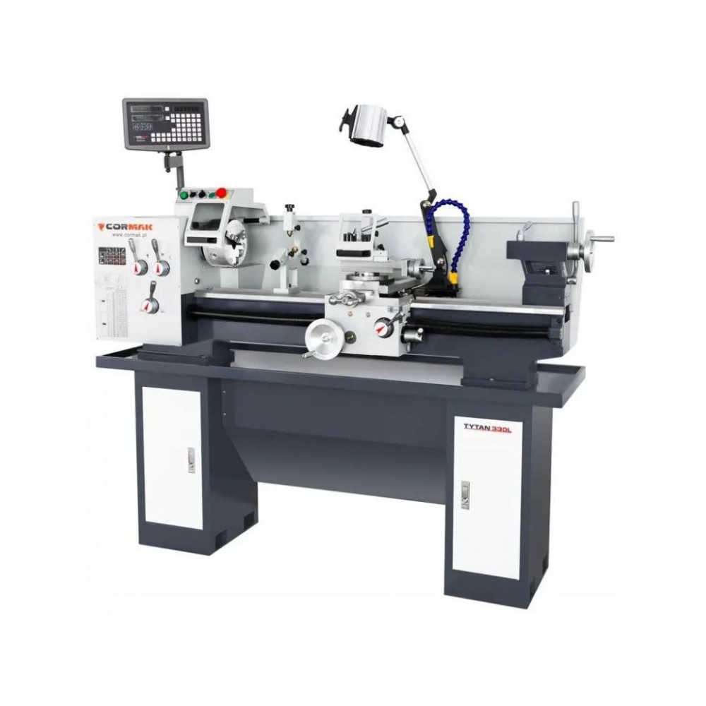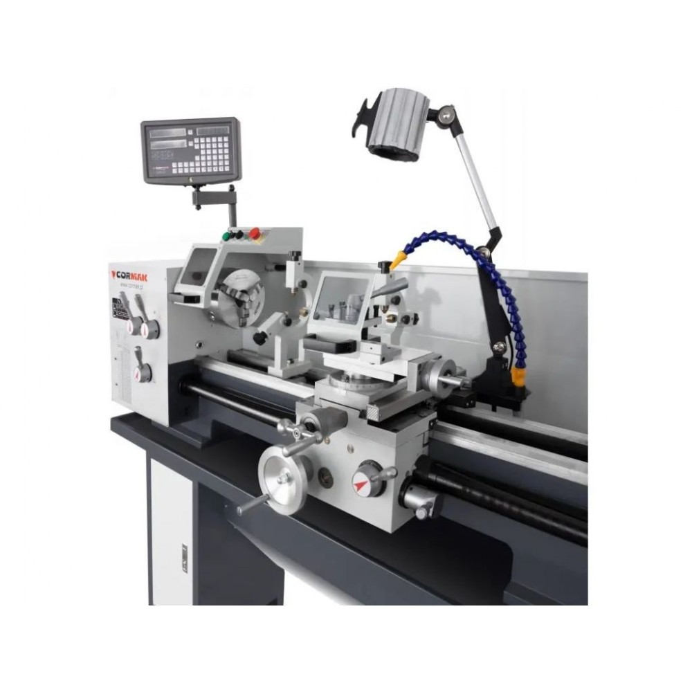 Універсальний токарний верстат Cormak 330х915 забезпечує якісну токарну обробку металевих заготовок діаметром до 330 мм, довжиною до 915 мм. Може використовуватися для багатьох завдань: обточування зовнішніх і внутрішніх поверхонь, точіння конусів, свердління, нарізання метричної і дюймової різьби тощо. Оснащений 12-швидкісним редуктором і асинхронним двигуном потужністю 1,1 кВт, який підтримує високий крутний момент на всіх швидкостях. Цифрова індикація по 2 осях забезпечує високу точність обробки.