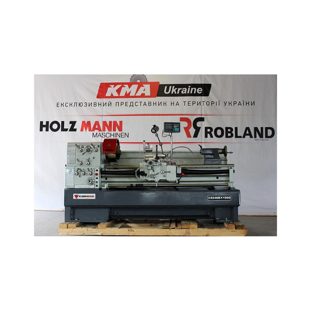Промисловий універсальний токарний верстат CORMAK C6246Bx1500 (TC) з діаметром обточування - 500 мм, довжиною обточування - 1500 мм, з внутрішнім діаметром шпинделя - 105 мм.