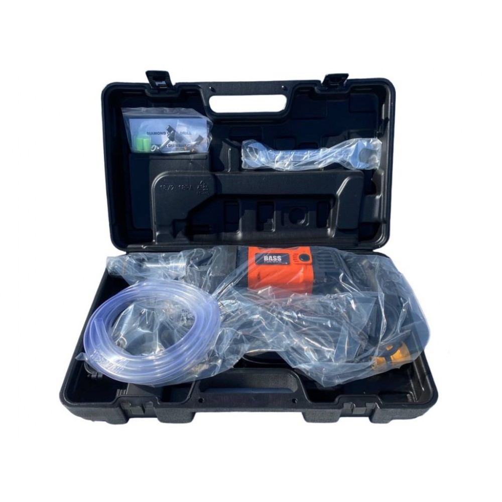 Універсальна установка для алмазного свердління з функцією мікроудару. Вона може використовуватися як для мокрого, так і для сухого свердління у бетоні, залізобетоні, цеглі та інших матеріалах. Двигун установки для алмазного свердління оснащений константною електронікою, функцією плавного запуску та захистом від перевантаження.