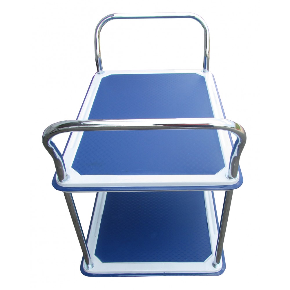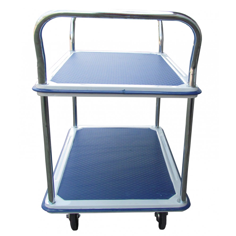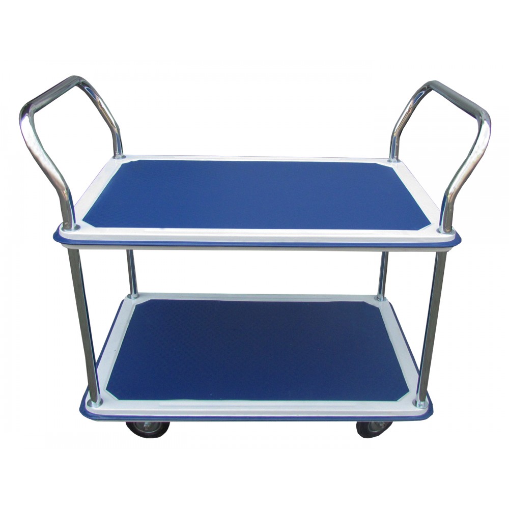 Вантажний візок Vulkan WTC300 - складське обладнання для транспортування вантажів загальною вагою до 300 кг. Представлена модель має дві сталеві полиці, а також обладнана 2 поворотними і 2 стаціонарними колесами з гумовим покриттям.