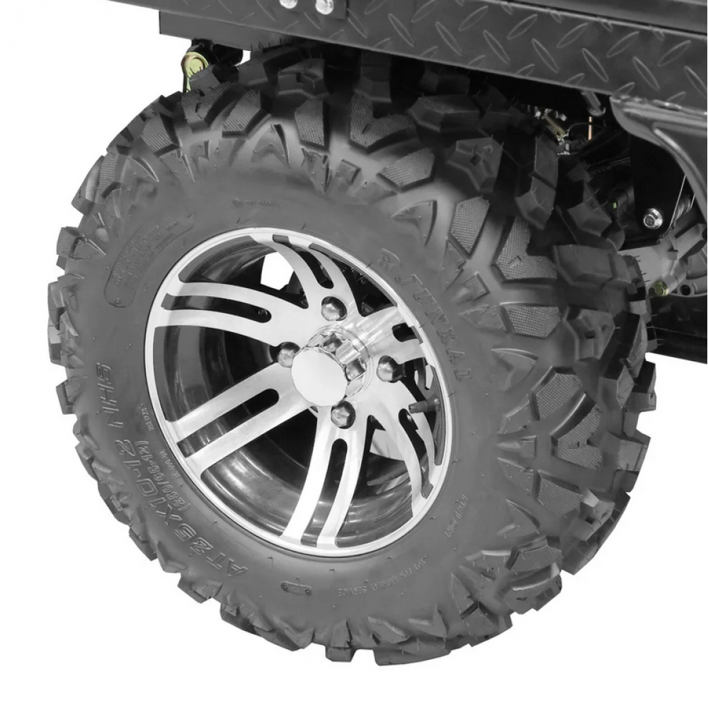 - Шини: Передні 25х8-12", задні 25х10-12" із грубим протектором для впевненого руху по бездоріжжю.