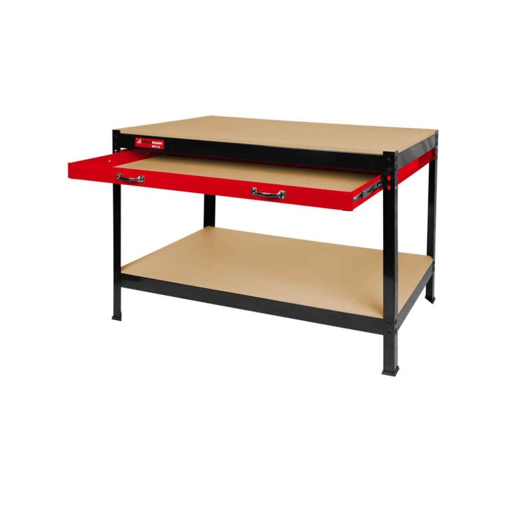 WT40 вражає практичною універсальністю та великим місцем для зберігання: дві плавні шухляди та велика полиця забезпечують простір для інструментів та аксесуарів. Робоча поверхня довжиною 1,2 метра забезпечує достатній робочий простір. Завдяки продуманій системі з'єднань збірка відбувається миттєво.
