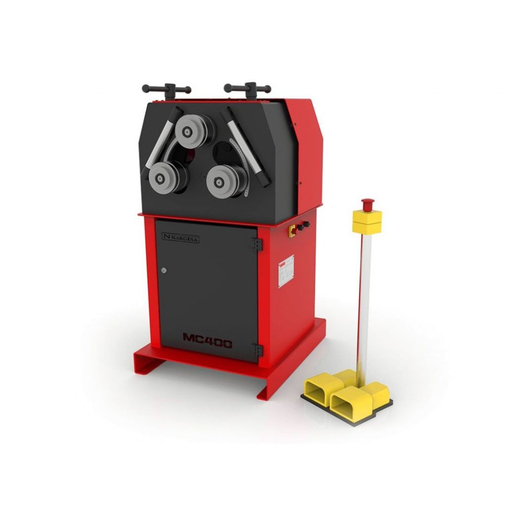 Верстат для гнуття труб та профілю Nargesa МС400 - виготовлений з високоміцної сталі. Верстат має три приводні ролики, загартовану зубчасту трансмісію. Максимальний розмір згинання круглої труби: 2” 1/2 дюйми або 63,5 мм.