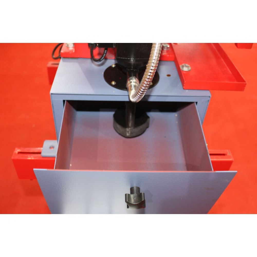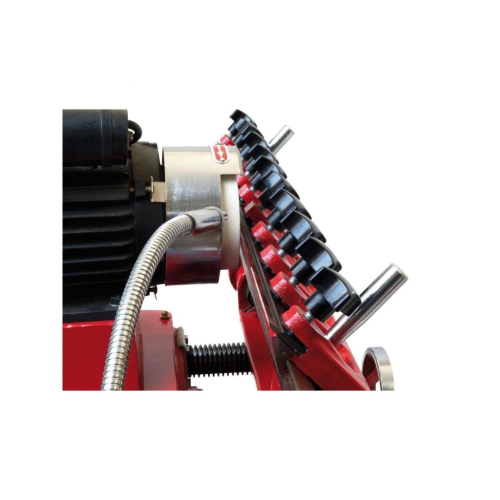 Верстат працює на базі двигуна потужністю 550 Вт з живленням від напруги 230 В. Діаметр шліфувального круга становить 100 мм, швидкість обертання - 2800 об/хв. Ніж швидко і надійно фіксується у верстаті за допомогою простої та ефективної системи затиску. Жорстка, стійка до вібрацій станина і система водяного охолодження забезпечують високу якість і точність заточування. Цей верстат для заточування стругальних ножів можна легко встановити на верстаку чи іншій робочій поверхні, що дозволяє зекономити робочий простір.