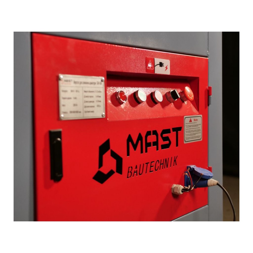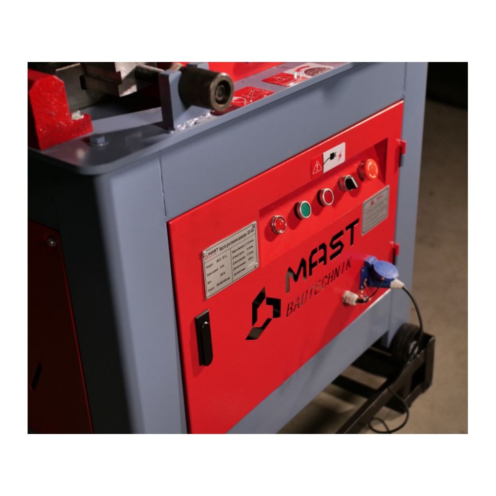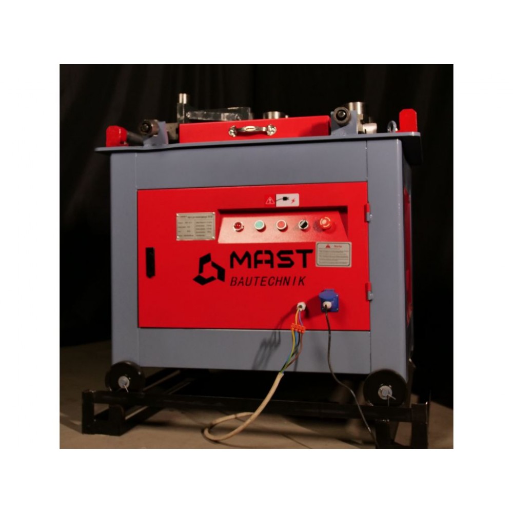 Верстат для згинання арматури MAST Bautechnik GW40A призначений для згинання арматури та сталевих прутків (класи А1, А3, А500С) від 6 до 36 та 40 мм відповідно. Передбачено два режими керування процесом згинання: ручний (кнопковий) та автоматичний (педальний). В автоматичному режимі при одноразовому натисканні на педаль диск обертається на заданий кут і автоматично повертається у вихідне положення, що дає можливість виконувати серію згинань на заданий кут з високою точністю