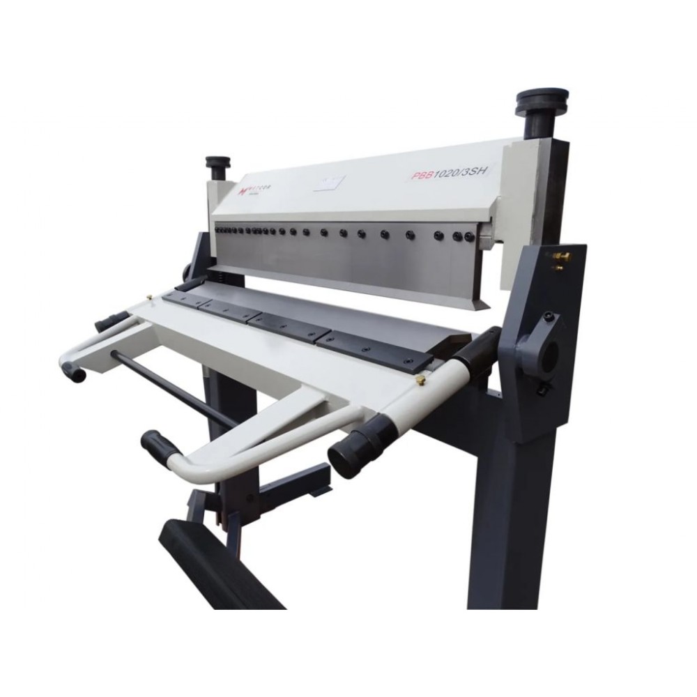 Верстат для згинання листового металу METCOR PBB1270/3SH забезпечує розширені можливості для обробки завдяки трьом сегментним смугам і унікальному куту згину верхньої смуги, що відрізняє його від звичайних фальцювальних машин. Ця модель дозволяє згинати листовий метал товщиною до 1,5 мм і має кут згину від 0° до 150°, що надає більше варіантів обробки в порівнянні з конкурентними пристроями.