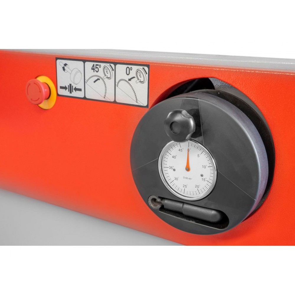 Пульт управління знаходиться на передній панелі верстата. Плавне і точне регулювання висоти пильного диска і кута маховиком. |