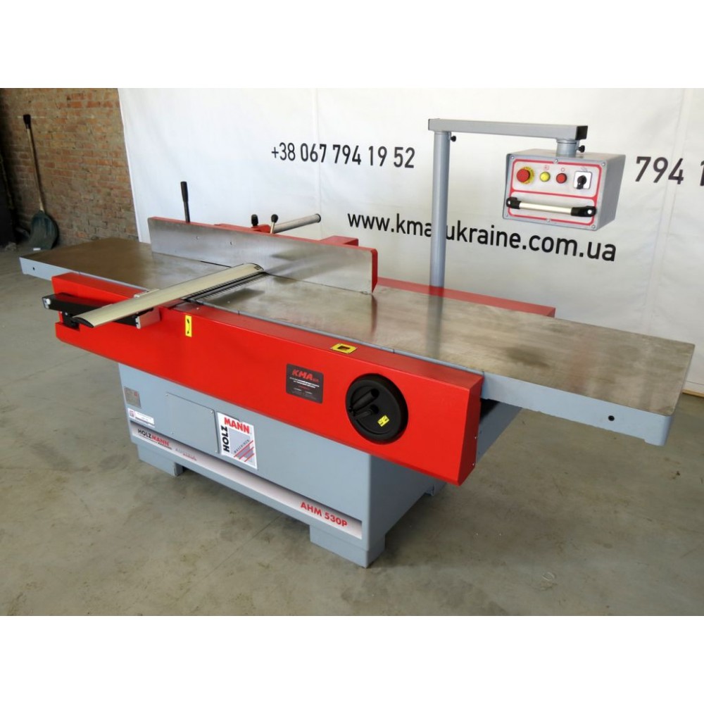 Верстат фугувальний Holzmann AHM 530P - це високоефективне промислове обладнання для вирівнювання поверхонь заготовок з деревини, яке має ширину обробки 530 мм і адаптований до інтенсивних навантажень двигун потужністю 5,5 кВт. Оснащений 4-ножовим стругальним валом Ø125 мм на прецизійних підшипниках, швидкість обертання якого становить 4700 об/хв. Живлення від трифазної мережі.