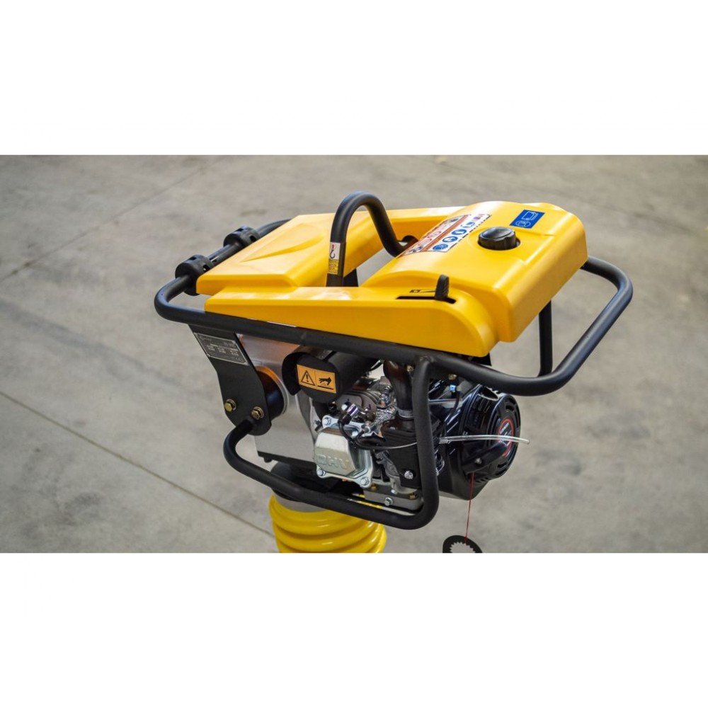Відцентрова сила 12 кН і частота вібрацій до 700 уд/хв висотою 40-66 мм за один удар дають можливість ущільнювати грунт до 30 см (залежно від типу поверхні). Ергономічна ручка і колеса роблять роботу зручною і легкою, а завдяки конструкції з посиленими тросами і спеціальними повітряними фільтрами ця трамбовка вібронога надзвичайно ефективна, надійна і довговічна.