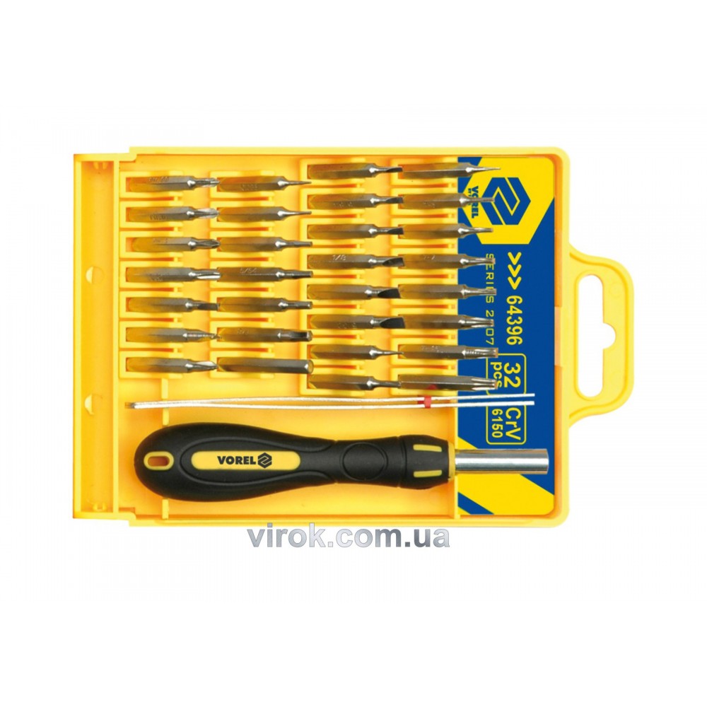 Викрутка-тримач для точних робіт VOREL з насадками 32 шт
